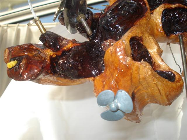 marine propulsion equipment finishing in a porthole. Penis with packed spring and Maria looking
