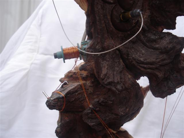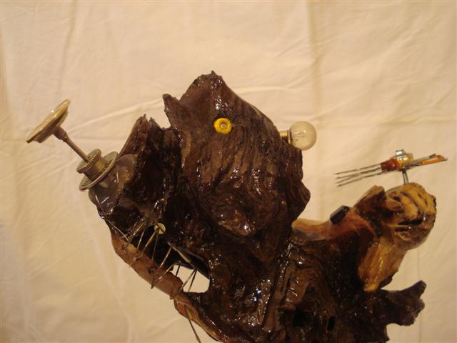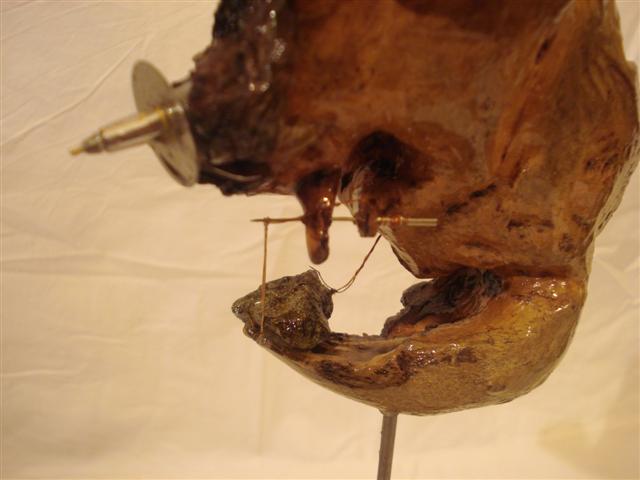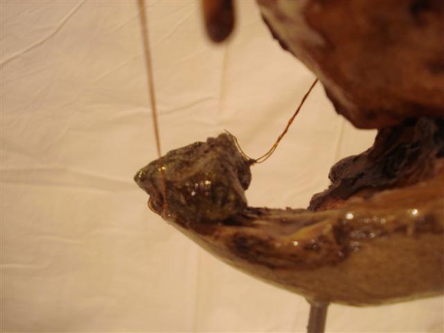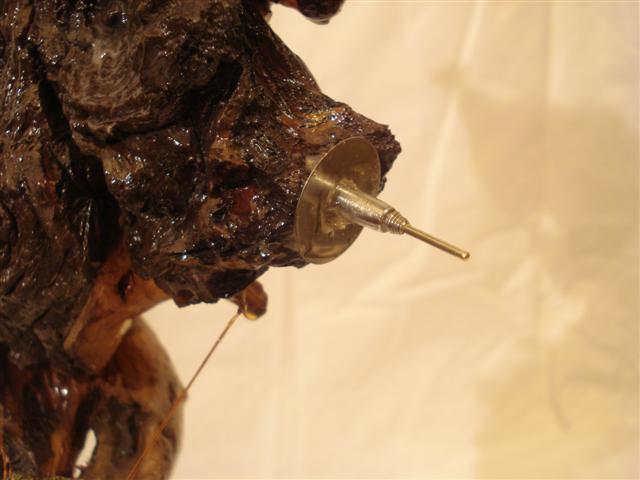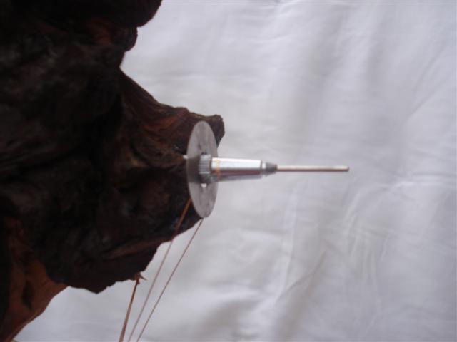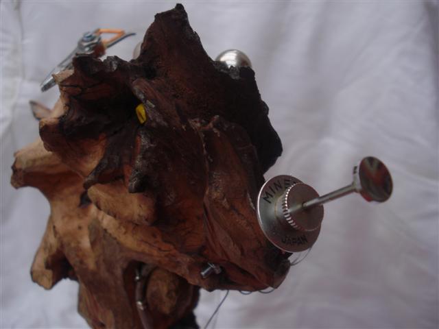 metal.Espermatozoide encabritado y en la cola un mineral atado. Cria de
