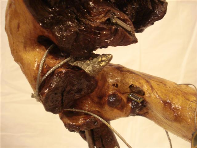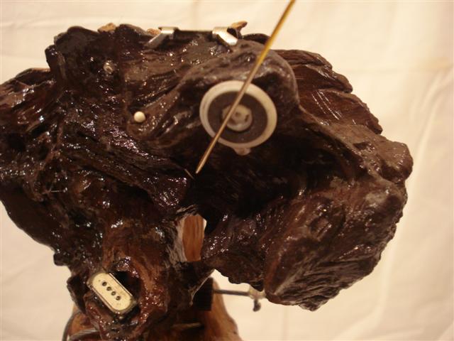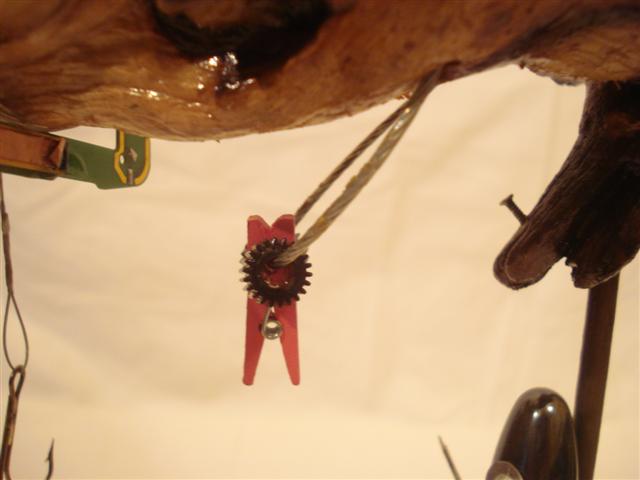 Peana Arandela de acero penta perforada Estado de animo que se intenta reflejar:Componentes Anzuelos Cuerda,piezas de celular hucha y dinero Motorizada: NO; Sonido: NO; Olor: NO |