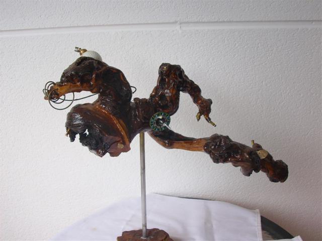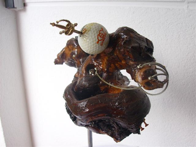 Peana Piedra de ojo de tigre Estado de animo que se intenta reflejar:Componentes Bobina,monedas,espada ,bola golf,iman Motorizada: NO; Sonido: NO; Olor: NO; |